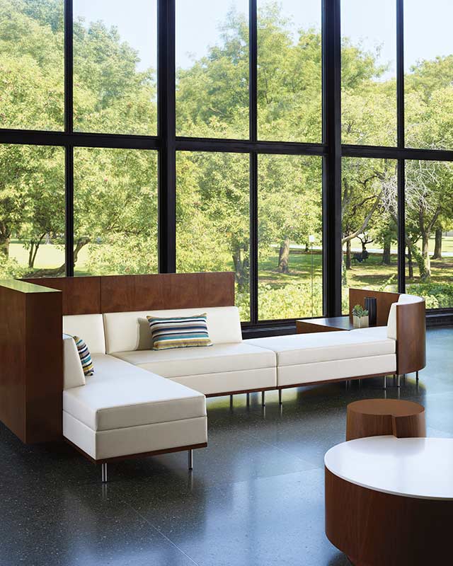 Thick & Thin is a modular seating system that offers a broad pallet of options in height, thickness, and geometry. This allows designers to cohesively configure seating to meet various privacy or work space needs.
